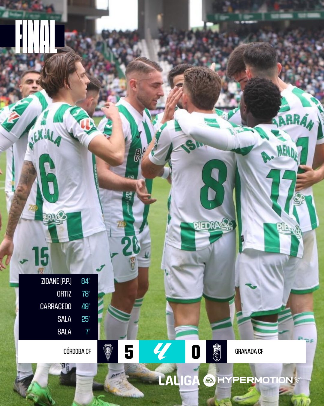 特奥-齐达内为科尔多瓦出战60分钟,而效力于格拉纳达的门将卢卡-齐达内则狂丢5球,最后一球还算做了自己的乌龙球,并在第87分钟伤退。