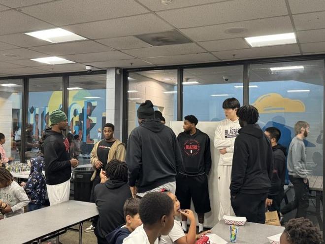 第一条消息,据开拓者记者Sean Highkin报道,球队今天在北波特兰的一家自我提升中心与孩子们进行互动。杨瀚森和利拉德都有参与了这一项活动,杨瀚森巨塔一般的身材让社区孩子们感到好奇。记者问开拓者主帅比卢普斯:对孩子们看到利拉德时反应如何?比卢普斯:他们都很兴奋。他可能是全州最有名的人,孩子们平时很少能见到他。记者:看到杨瀚森和孩子们互动时你有何感受?比卢普斯:语言不是问题。孩子们被他的体型震撼,也喜欢他自然的互动方式。比卢普斯夸赞杨瀚森和孩子们的互动很融洽,而且在语言沟通上也没问题,杨瀚森表现得很自然,比卢普斯队杨瀚森感觉良好。