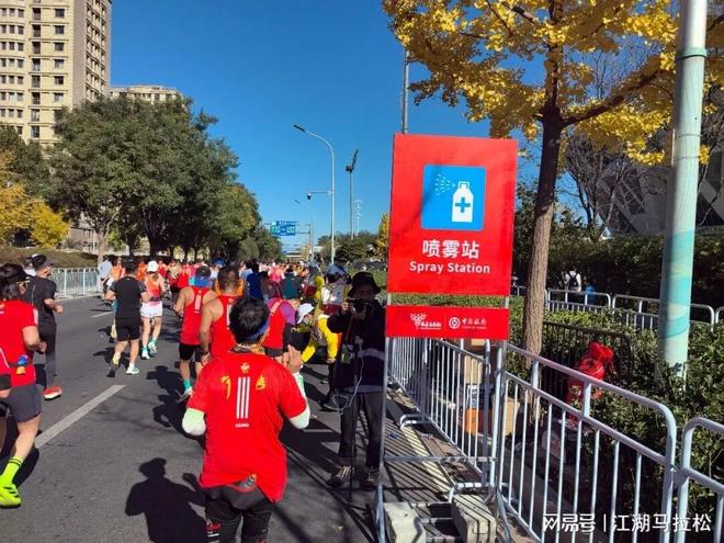 任何一个补给站,从头望不到尾。后半程的多个喷雾站,志愿者双手都在喷,起码一百米,密密麻麻站着。你临近他们跑,即便没停下来,热心的志愿者都会喷到你腿上。