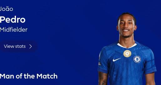 - 英超 | 打入一球,若昂佩德罗当选切尔西vs狼队全场最佳球员