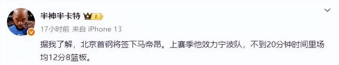 - NBA | 正式确定!北京男篮签下第四名外援,2米08内线悍将加盟场均12+8