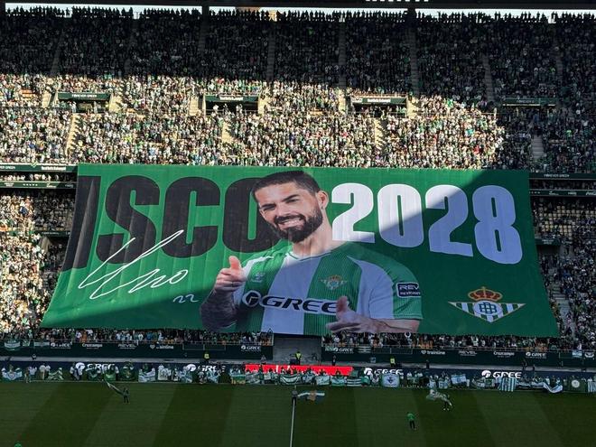 西甲第13轮,皇家贝蒂斯主场对阵赫罗纳,赛前,皇家贝蒂斯官方宣布,俱乐部与伊斯科续约至2028年,并在主场看台展示TIFO,庆祝这一特殊时刻。