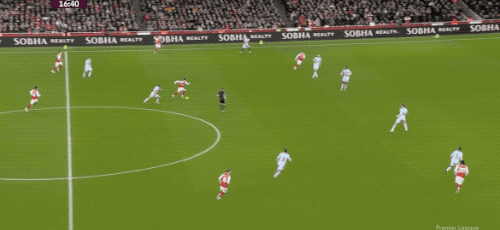 第37分钟,阿森纳前场抢断,梅里诺起到轴心作用,赖斯的传中正好越过两名后卫,马杜埃凯的射门被后卫挡出底线。