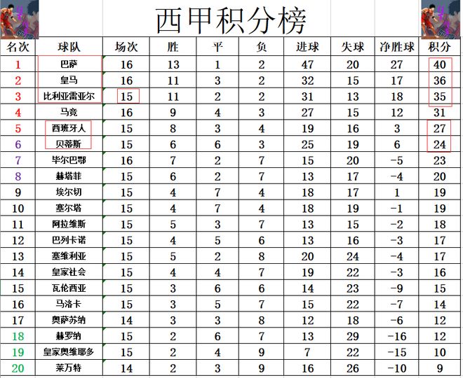 - 西甲 | 随着皇马22爆冷,仍居榜首,西甲最新积分榜出炉,马竞乌龙绝杀